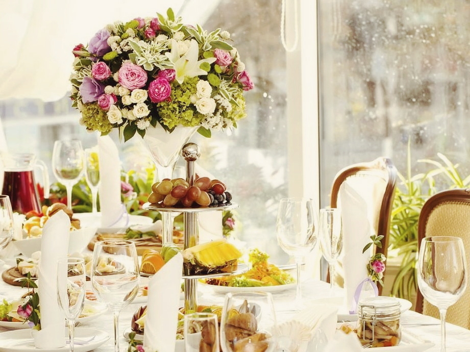 Основное преимущество фуршета – возможность принять и обслужить большее количество гостей на небольшой площади. Стоимость фуршета в расчете на одного приглашенного будет значительно ниже, чем на банкетный стол.