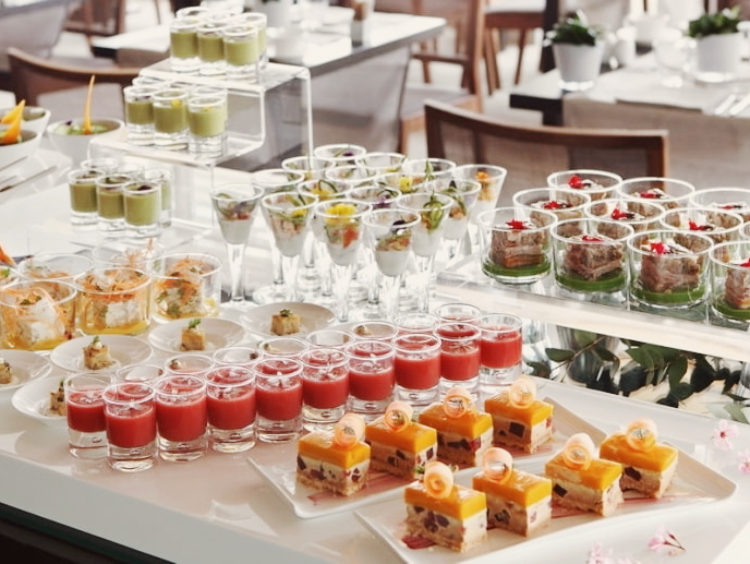 Фуршет – мероприятие универсальное. Его можно организовать в любом месте: ресторане, кафе, дома, в офисе, на природе или в усадьбе. Из разнообразного ассортимента закусок каждый гость сможет выбрать блюда по своему вкусу.